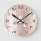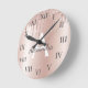 Rose Gold - Blush Pink Glitter Metal Monogram Name Round Clock