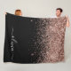 Rose Gold Blush Pink Glitter Script Monogram Girly Fleece Blanket