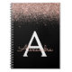 Rose Gold Blush Pink Monogram Black Glitter Notebook