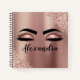Rose Gold Faux Foil Metallic Sparkle Glitter Brushed Metal Monogram Name and Initial Eyelashes (Lashes), Eyelash Extensions and Eyes Notebook - Sketchbook Planner. This makes the perfect sweet 16 birthday, wedding, bridal shower, anniversary, baby shower or bachelorette party gift for someone decorating her room in trendy cool style.
