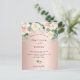 A trendy bright colourful floral wedding invitation in blush pink, rose gold and white. A rose gold faux metallic looking background. Decorated with large, lush watercolored flowers, florals in white, rose gold, blush pink with some eucaluptus greenery. Personalize and add your names and wedding details. Black text.