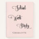 A girly rose gold, blush background. Personalize and add a name. Black text: School, work, study