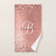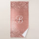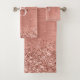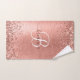 Personnalisez facilement ce design chic branché de serviettes de bain avec une jolie parties scintillant brillante en or rose sur un arrière - plan métallique brossé en or rose.