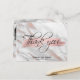 Say thank you to your guests with these beautiful, one of kind, unique postcards. Faux rose gold brush stroke with lovely script thank you wording. Background in light grey marble with rose gold foil. Personalize them by adding bride and groom's names and wedding or anniversary date with photo / picture. Back of card has photo with option message
