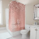 Easily personalize this trendy chic shower curtain design featuring pretty rose gold sparkling glitter on a rose gold brushed metallic background.