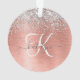 Easily personalize this trendy chic ornament design featuring pretty silver sparkling glitter on a rose gold brushed metallic background.