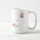 Enjoy your latte in a mug designed with soft roses, greenery, and gold butterflies. The rose-gold frame can be customized with any name or message.