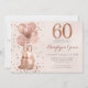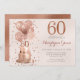 This beautiful 60th birthday party invitation featuring a 2-layer rose gold glitter cake with rose gold balloons, the number 60 in rose gold and sparkly rose gold confetti on blush would be perfect for celebrating your wife, mom, sister, friend, co-worker. It is traditional and classic while being fresh, modern and contemporary. The back is a lovely coordinating rose gold foil.