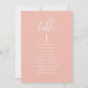Aidez vos invités à trouver leur table avec cette élégante carte moderne de plan de salon avec les noms des invités. Cartes recto-verso pour que les clients puissent chercher leur nom à l'avant ou à l'arrière. Libérez de l'espace tout autour en vous donnant la liberté d'utiliser des clips ou un trou de perforation pour accrocher des écrans, ou d'utiliser le support/cadre de table. ton or rose arrière - plan et texte blanc. Détails de calligraphie manuscrite moderne. Plusieurs options de couleur. Ayez tous les numéros de table dans la même couleur ou mélangez les couleurs selon le thème de couleur de votre événement.