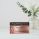 This chic design, perfect for a high-end cleaning or maid service, features a sophisticated black background border and a centerpiece metallic band of shimmering rose gold. The card is highlighted by borders of dazzling rose gold glitter along the top and bottom.