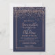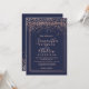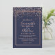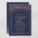 Rose gold confetti navy blue border chic wedding invitation