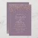 Rose gold confetti purple typography wedding invitation