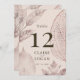This delicate and elegant wedding table number features a pink beige background with leaves in faux/fake rose gold foil. Personalize it for your needs. You can find matching products at my store.