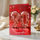Celebrate a magnificent milestone with this elegant 90th birthday greeting card. Featuring a glamorous, 3D-effect rose gold diamond-studded "90" set against a vibrant red background with shimmering bokeh sparkles, this card exudes luxury and grace. It is the perfect choice for honoring ninety years of brilliance for a beloved mother, grandmother, or dear friend. The interior features a heartfelt, sophisticated message that conveys warmth and appreciation. Use the template fields to easily update the name and internal sentiment to create a truly unique keepsake for this once-in-a-lifetime celebration.