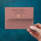 Envelope. Lined on the inside with a textured rose gold diamond pattern background and an elegant script text. ✔Note: Not all template areas need changed. 📌If you need further customization, please click the "Click to Customize further" or "Customize or Edit Design" button and use our design tool to resize, rotate, change text colour, add text and so much more. ⭐This Product is 100% Customizable. Graphics and / or text can be added, deleted, moved, resized, changed around, rotated, etc... ⭐99% of my designs in my store are done in layers. This makes it easy for you to resize and move the graphics and text around so that it will fit each product perfectly. 📌 (Please be sure to resize or move graphics if needed before ordering) You can also "TRANSFER DESIGN" on other Zazzle products and adjust the design to fit most of Zazzle items. (button is down on the right side of the page) This design is made with high resolution vector and/or digital graphics for a professional print. 📌NOTE: (THIS IS A PRINT. All Zazzle product designs are "prints" unless otherwise stated under "About This Product" on the left side of this page) The design will be printed "EXACTLY" like you see it on the screen and on the product...so please make sure when you do your changes on the resizing of any of the graphics or text that it fits in the areas correctly and that your spelling and wording is how you like it to be in size, colour and font. If you have any questions about the "DESIGN ONLY" or need help please contact me at ✉ siggyscott@comcast.net or visit my store link: https://www.zazzle.com/store/designsbydonnasiggy (Copy and Paste) I'll be happy to help. 📌 ALL OTHER QUESTIONS (shipping, refund, the printing, the product, etc...) please contact Zazzle or the Maker ⭐DIRECTLY⭐. Thank you for the support and stopping by my store - DesignsbyDonnaSiggy. © Donna Siegrist⭐⭐⭐ ZAZZLE promises 100% satisfaction. If you don't absolutely love it, Zazzle will take it back! ⭐⭐⭐ 1-888-8ZAZZLE (1-888-892-9953) Phone hours: Mon - Fri: 9AM - 5PM PT (12PM - 8PM ET)