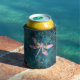 Rose Gold Dragonfly on Turquoise Floral Background Can Cooler