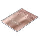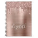 Custom elegant and girly notebook featuring rose gold faux glitter dripping down a rose gold faux brushed metallic background. Personalize with your name in a stylish trendy white script with swashes.