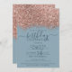 Rose Gold Dusty Blue Glitter Confetti Birthday Invitation