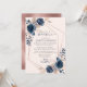 Rose Gold Dusty Pink Navy Floral Bridal Shower Invitation