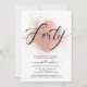 Stylish, elegant rose gold & blush pink 40th birthday invitation. Design features faux foil rose gold stroke and typography script ''forty'' in handwritten lettering on a blush pink background. Personalize with party details.