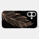 Sleek, shiny iPhone case features a glittering, delicate rose gold feather on a black background. PLEASE NOTE: glitter is a digital image, not actual glitter.