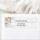 A white rustic wood as background. Decorated with a rose gold and blush pink rose, floral and eucalyptus greenery and faux gold foliage. Personalize and add your name and address. Black letters.
