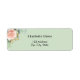A sage green background. Decorated with a rose gold and blush pink rose, floral and eucalyptus greenery and faux gold foliage. Personalize and add your name and address. Black letters.