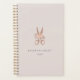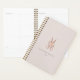Chic personalized planner for your salon or hairstyling business features two lines of custom text in classic grey lettering, on a pale blush pink background adorned with a pair of flower-embellished scissors in faux rose gold foil. Personalize with your name or salon name and the year, or your choice of custom text.