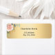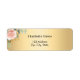 Un fond de couleur or faux. Décoré avec une rose rose gold et blush, des fleurs et du feuillage de eucalyptus et des feuilles dorées. Personnalisez et ajoutez votre nom et adresse. Lettres noires.