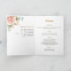 Welcome text, photo, program, menu and a thank you note on the back. Decorated with rose gold flowers, roses and eucalyptus greenery.