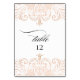 Table number with glamourous rose gold foil in a bohemian chic design.