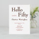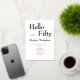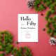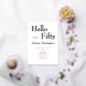 Rose Gold Foil on White Hello Fifty Modern Minimal 50th birthday invitation that you can personalize and send out for your fiftieth birthday party celebration. The words "Hello Fifty" are set using trending bold font typography. Text colours can be changed using the edit menu.