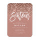 Rose gold effect girly pink glitter sparkle modern typography sweet 16 birthday invitation. Modern minimal on trend design with elegant script. Part of a birthday collection. Perfect for your glam teen.