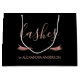 Blush Pink - Rose Gold Glitter and Sparkle eye lash extensions cosmetologist Personalized Business Black Gift Bag. The name and profession can be changed on this bag.