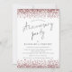 Rose Gold Glitter Anniversary Party Invitation. Available digitally and printed. This modern design has elegant informal set script for Anniversary Party and the rest of the typography you can easily personalise. For extra glam rose gold faux glitter borders the top and bottom on each side.