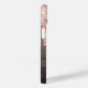 An elegant, girly and glam phone case. Rose gold, pink faux glitter drip, paint dripping look. Black, brown ombre, caffe latte coloured background. Personalize and add your name and your monogram initials, letters. The monogram is a pattern in the background. Rose gold and grey coloured letters.