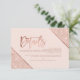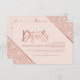 Rose Gold typography on customizable blush pink rose gold glitter colour block and faux rose gold geometric stripes chic wedding directions and details , perfect for elegant, beach wedding, add your accommodation at the back