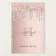 A rose gold background with elegant faux rose gold, pink and faux silver glitter drips, paint drip look. Personalize and add a name, monogram letter and a title. The name is written in dark rose gold with a large modern hand lettered style script with swashes. To keep the swashes only delete the sample name, leave the spaces or emoji's in front and after the name.