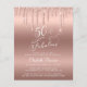 Elegant, chic and budget-friendly 50th birthday party invitation featuring "50 & Fabulous" written in stylish white script against a rose gold background, with rose gold faux glitter dripping from the top. You can personalize with her name and the party details in white typography.