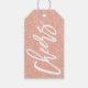 Faux Rose Gold Glitter Cheers Gift tag with room for a message from the Bride and Groom on the back. A perfect way to customize wedding and shower favours.