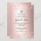 Elegant rose gold glitter metallic foil and confetti Star of David with Hebrew name Bat Mitzvah and rose gold glitter confetti. A simple and chic invitation.