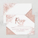 Rose Gold typography on customizable white rose gold glitter colour block, and faux rose gold geometric stripes chic rsvp wedding , perfect for elegant, stylish wedding,
