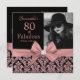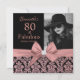 Rose gold glitter black damask | 80th Birthday Invitations. Eighty and Fabulous! A beautiful modern elegant pink rose gold glitter floral damask 80th Birthday Party Invitations you can personalize and send out your eightieth birthday party celebration. At the centre pretty pink bow. Replace the sample photo with your own. The words "80 and Fabulous" are set using popular typhography. You can personalize script fonts and font colours in the design. Please note, this design is a printed photo effect with no real glitter. # 3302b Great for all occasion just change age. Birthday party invites template you can customize with your own details and age. Pretty feminime template for 15th, Sweet 16, Quinceanera, 18th, 20th, 21st, 30th, 40th, 50th, 60th, 70th, 80th, 90th, 100th, Fabulous girls and womens. Please note, this design is a printed photo effect. If you need help, please contact me.