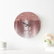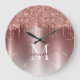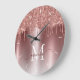 Rose Gold Glitter Drips Monogram Metallic Large Clock