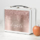 Custom elegant and girly lunch box with rose gold faux glitter dripping against a rose gold faux brushed metallic background. Personalize with your name in a stylish trendy white script with swashes.