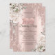 Rose Gold,Glitter Drips,White Flowers 100th Invitation