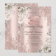 A modern, chic, and glamourous with rose gold glitter drips, and white flowers on a rose gold background. Beautifully invitation that can be customized with your name. Select the "customize" button to change the font style, colour and size.