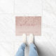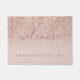 Elegant personalised family name doormat featuring your family name with your established date set in a classic typography on a rose gold glitter ombre background with the message welcome set in an elegant script. Designed by Thisisnotme©