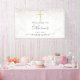 Featuring elegant rose gold glitter and a simple gold crucifix, this chic first holy communion welcome sign banner can be personalized with your special event information. Designed by Thisisnotme©