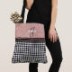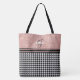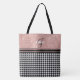 Elegant Black and White Houndstooth tote bag contrasted by a chic monogram name rose gold glitter colour block. Personalize with your name and initial.